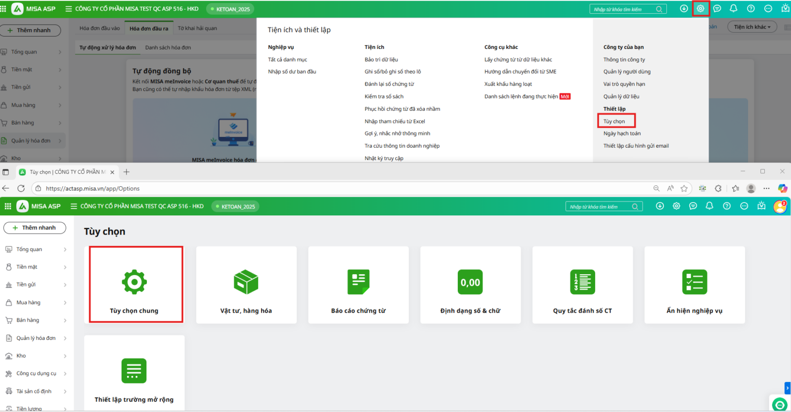 - Vào Thiết lập\Tùy chọn\Tùy chọn chung:
