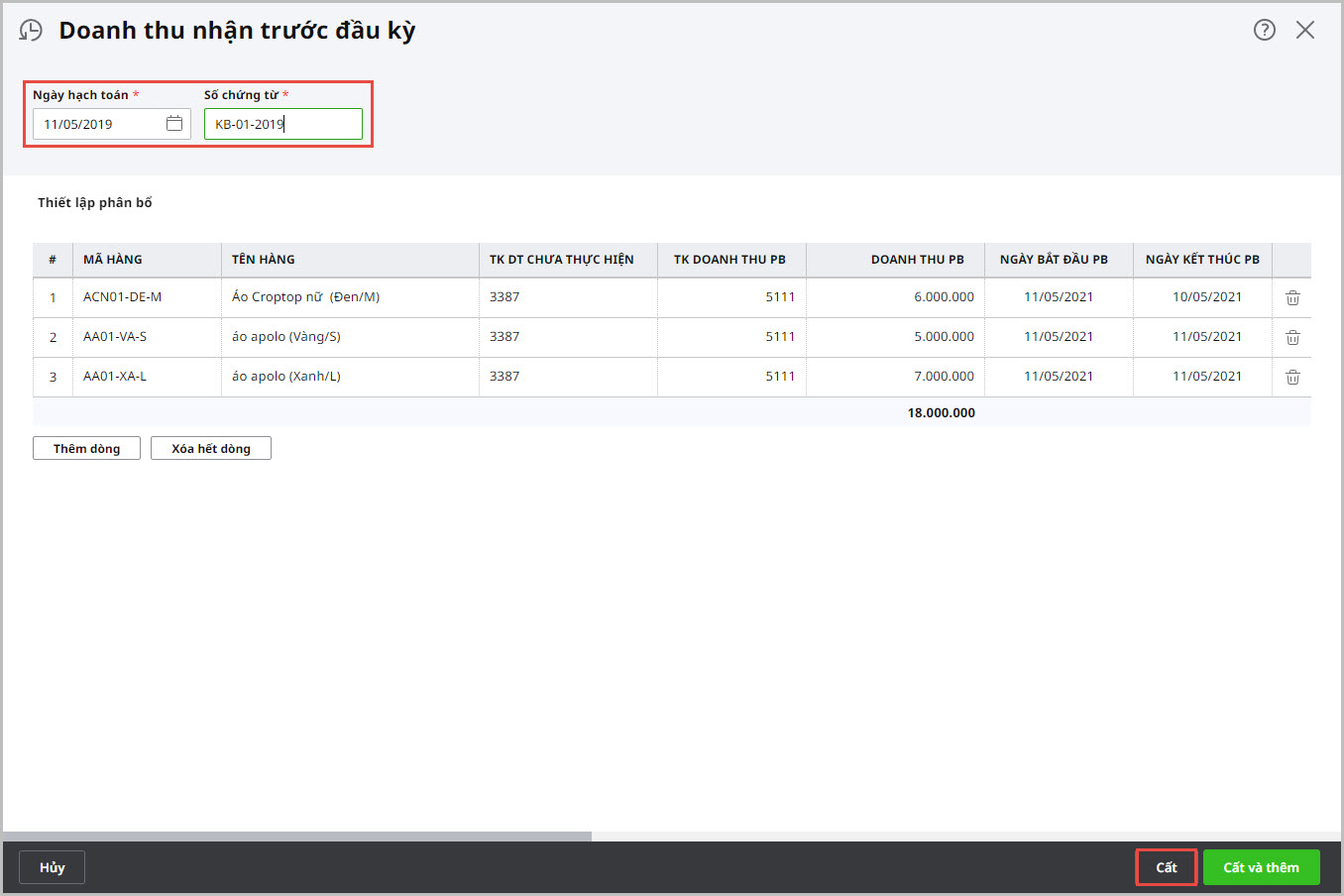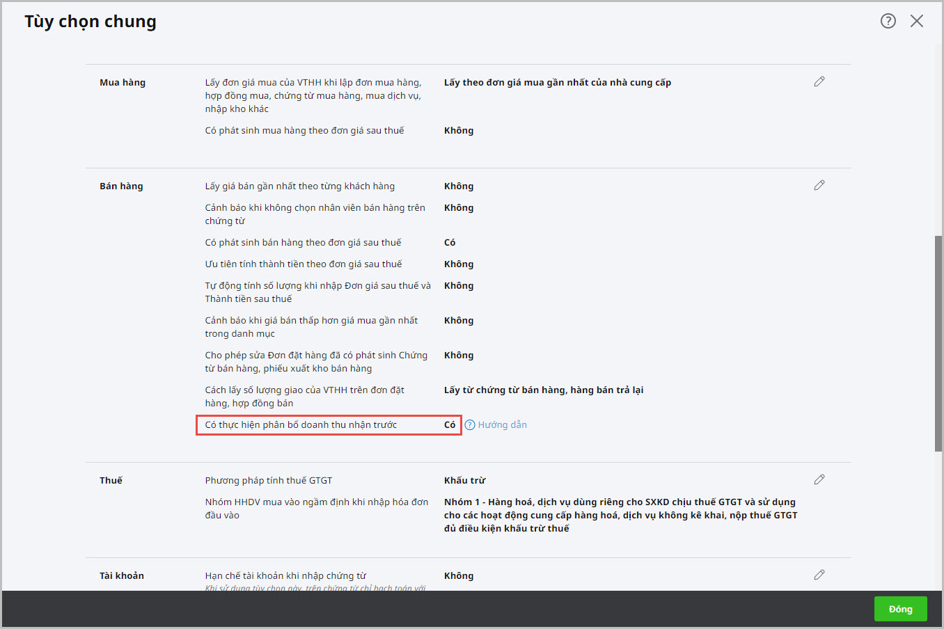 - Thiết lập tùy chọn phân bổ doanh thu nhận trước