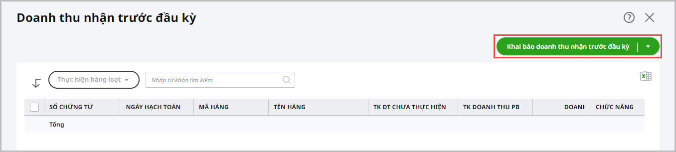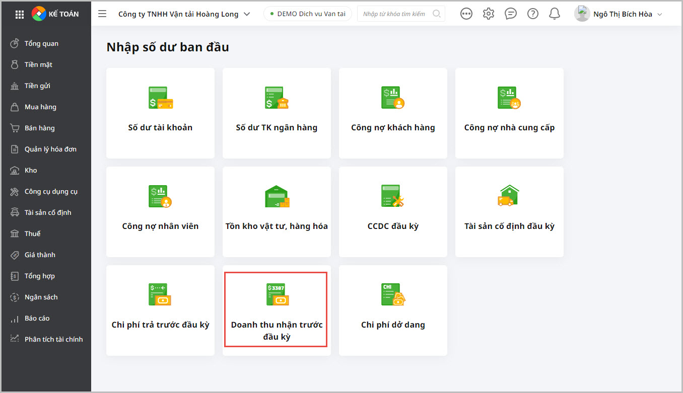 Bước 2: Chọn mục Doanh thu nhận trước đầu kỳ: