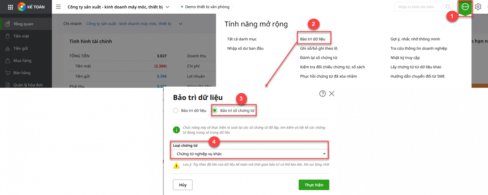 3. Thực hiện bảo trì số chứng từ