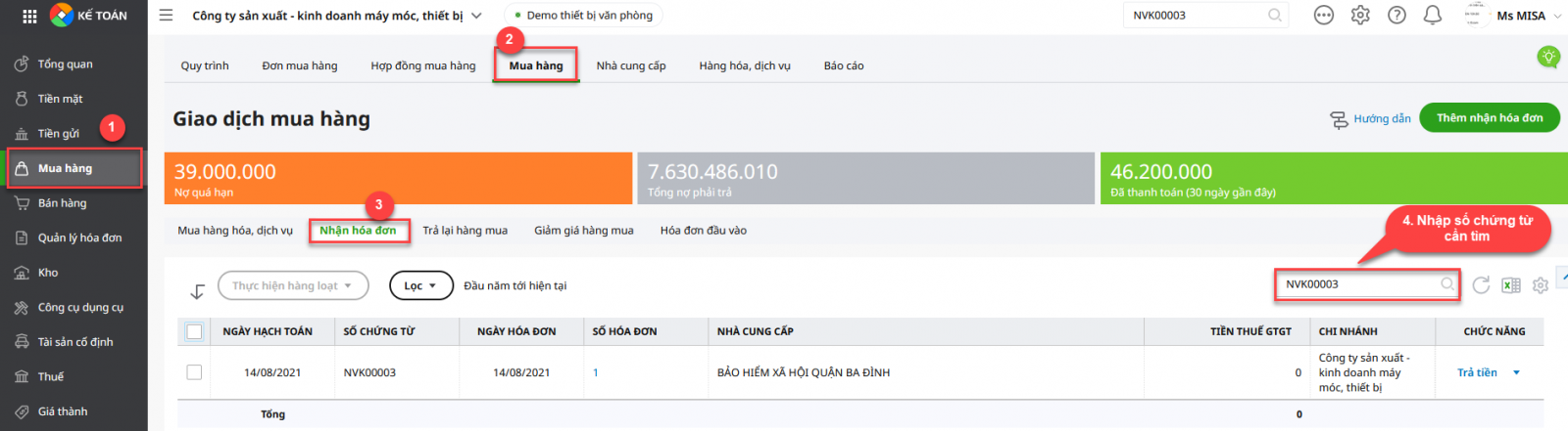 Cách 1: Dùng chức năng tìm kiếm nhanhCách 2: Kiểm tra trong Danh sách chứng từ/Hóa đơn1. Kiểm tra trong Danh sách chứng từ