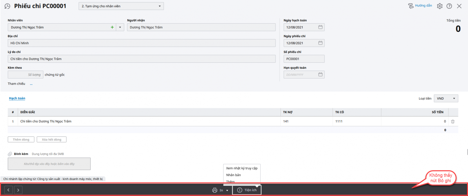 Mục đích: Bài viết chỉ rõ nguyên nhân và cách khắc phục khi không thấy nút Bỏ ghi trên chứng từ đã hạch toán, đảm bảo có thể sửa hoặc xóa chứng từ khi cần thiết.
