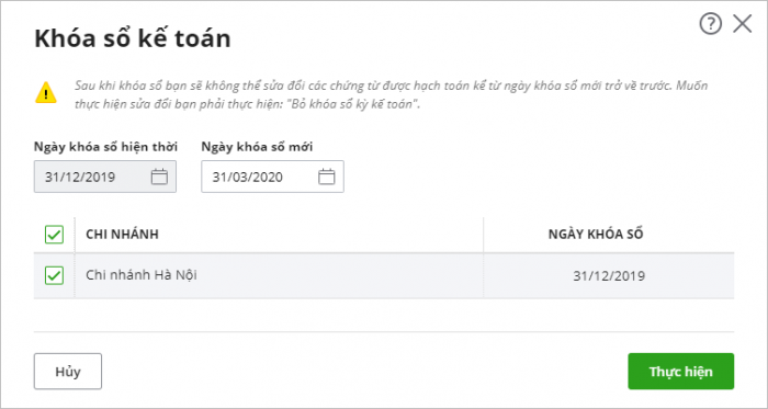- Khóa sổ kỳ kế toán để ngăn thay đổi số liệu đã chốt.