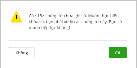 Bước 4: Trường hợp trong kỳ khóa sổ có chứng từ chưa được ghi sổ, chương trình sẽ xuất hiện thông báo:
