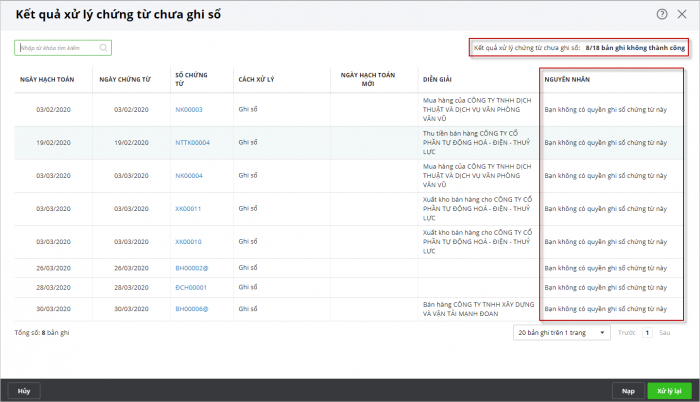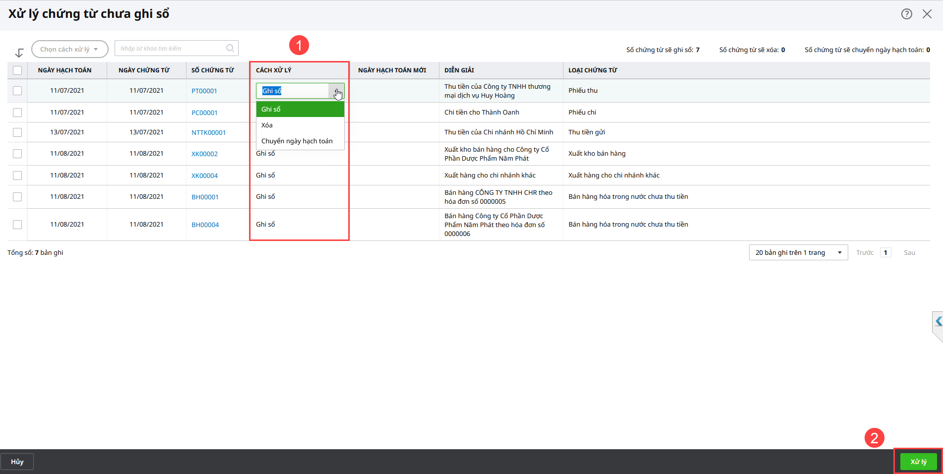 Bước 5: Xử lý chứng từ chưa ghi sổ.