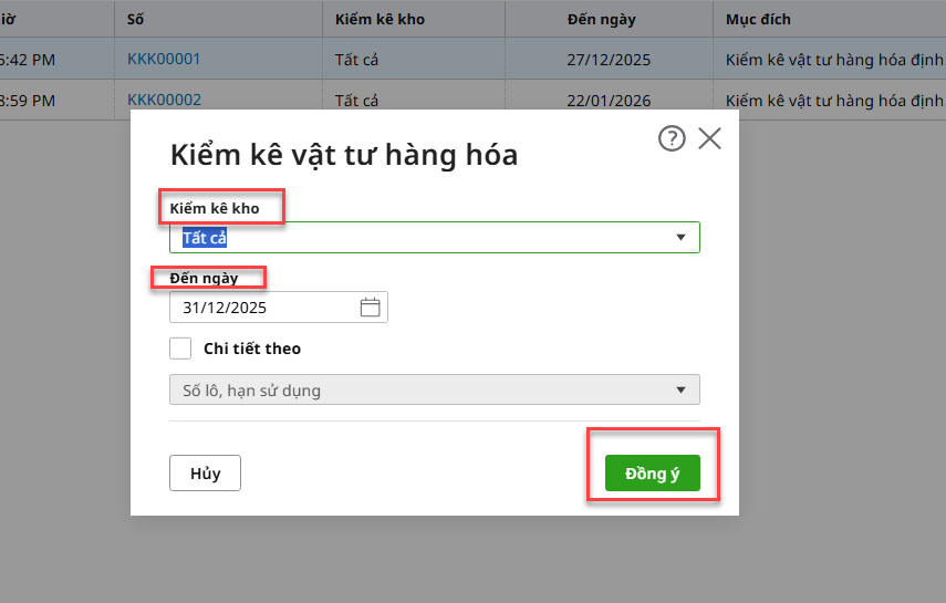 Xem các quy định và quy trình thực hiện kiểm kê tại đây. 3.2 Thực hiện kiểm kê hàng tồn kho