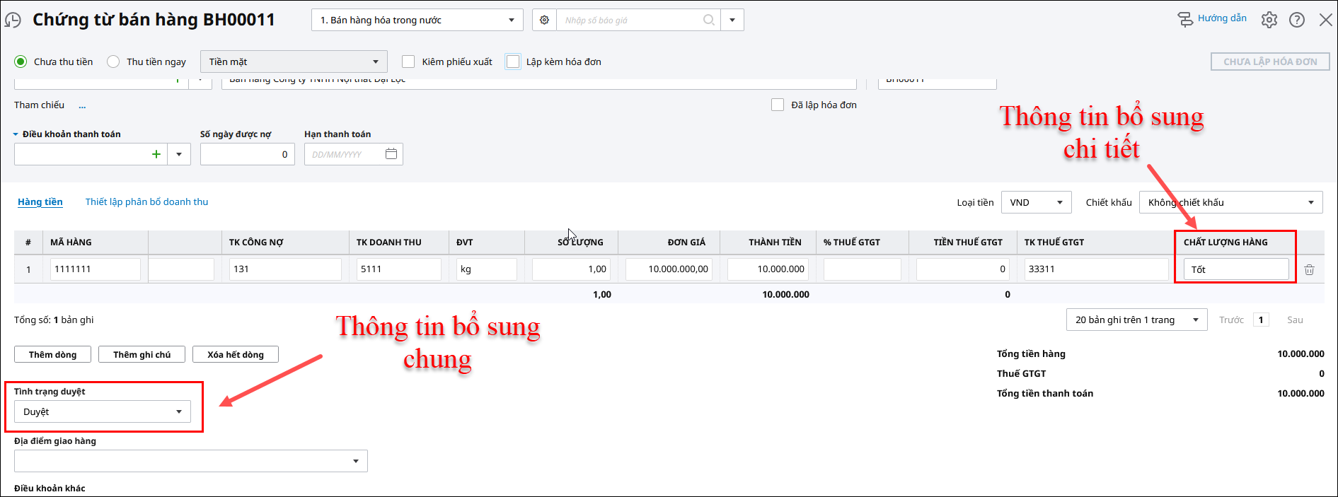 – Thiết lập các trường thông tin bổ sung chung và chi tiết trên chứng từ