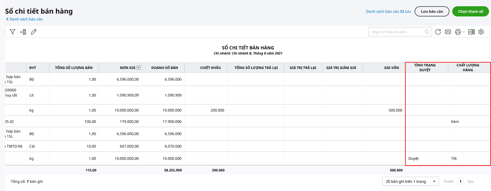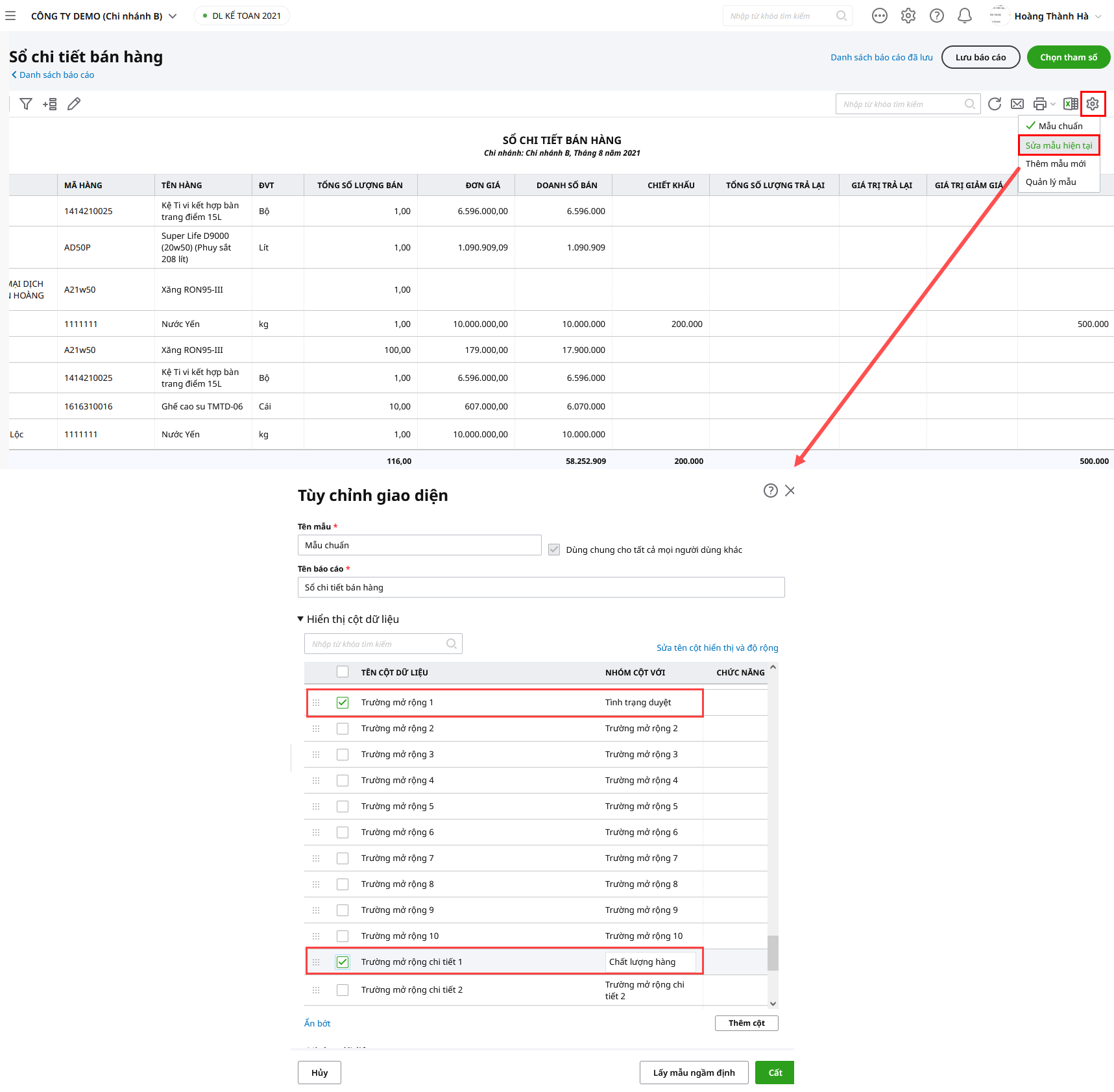 – Hiển thị các trường thông tin bổ sung trên báo cáo