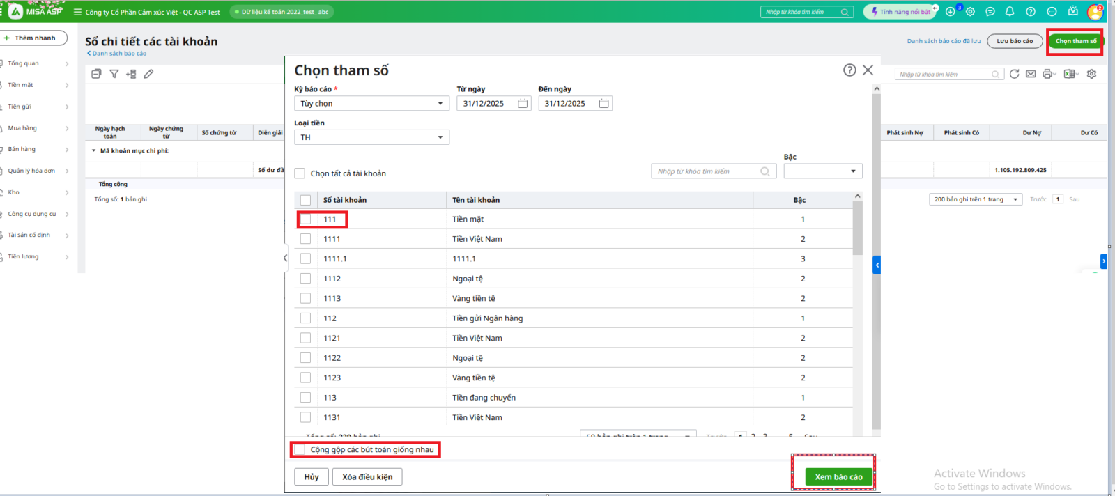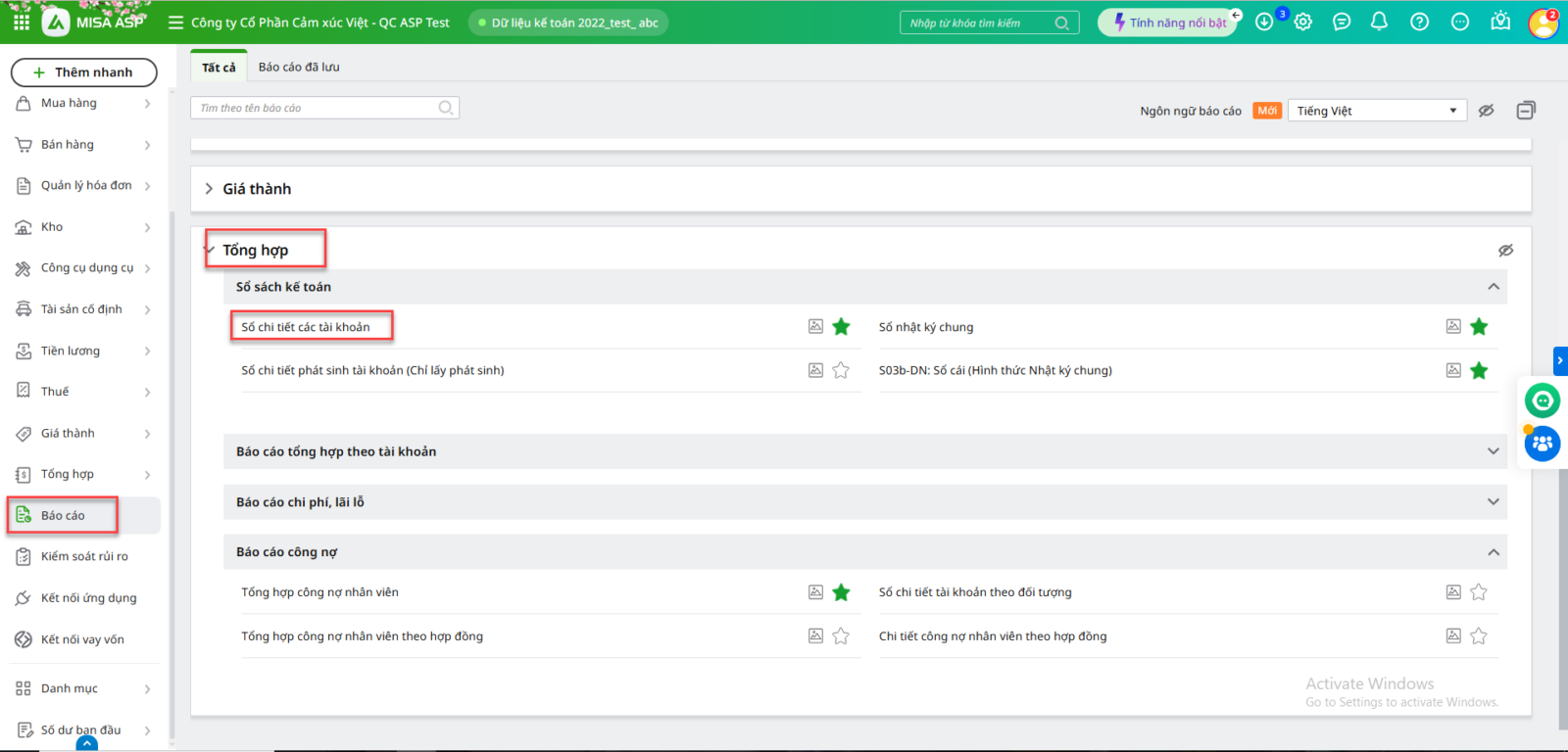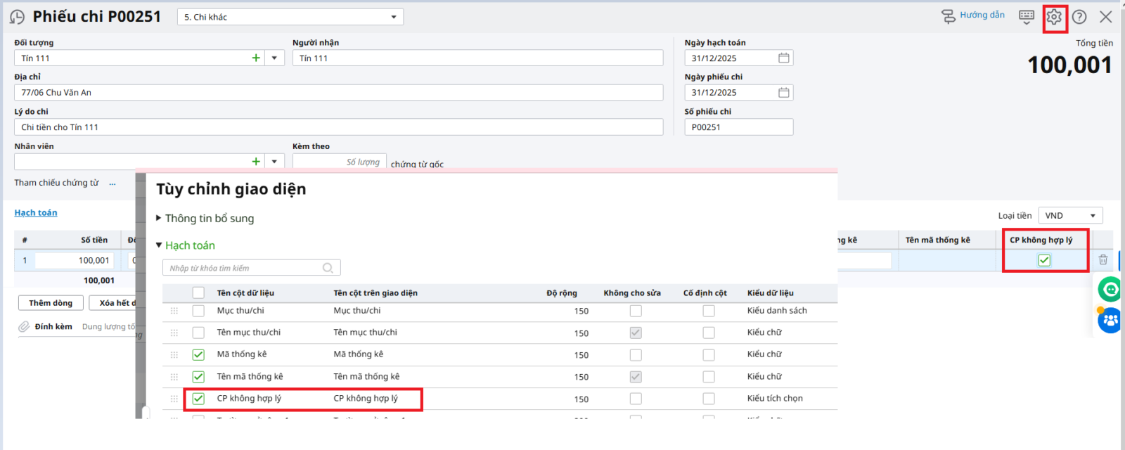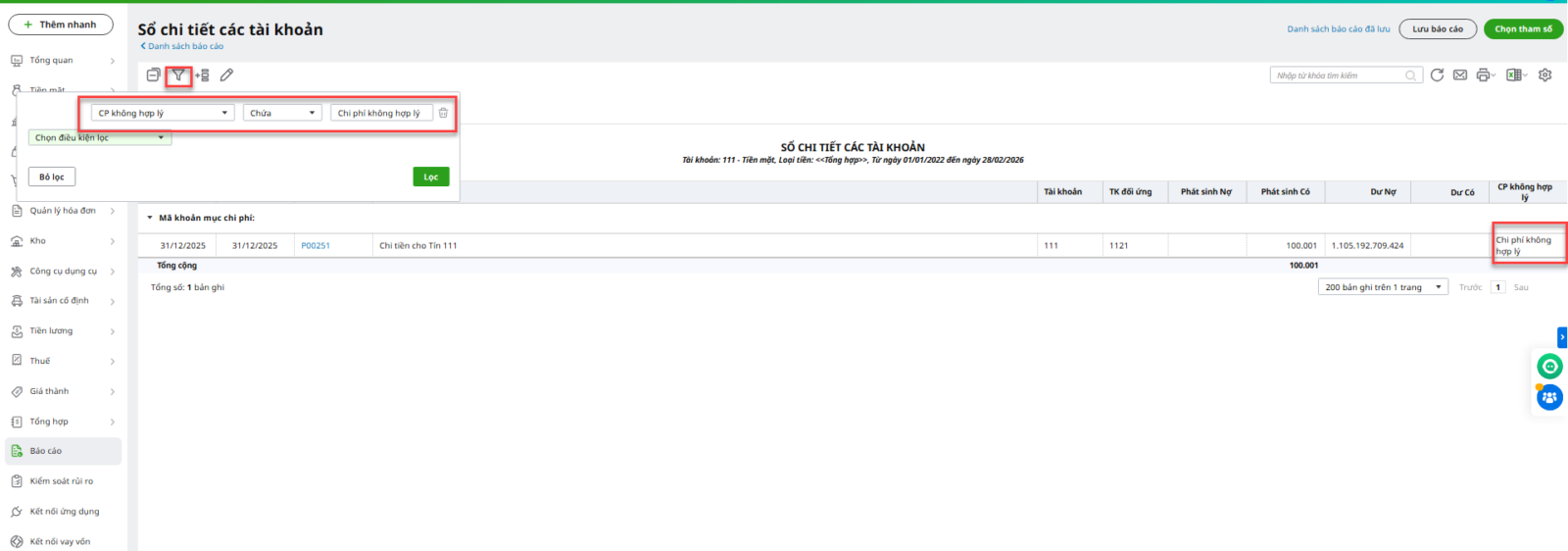 Bước 2. Theo dõi chi phí không hợp lýĐể xem danh sách các CP không hợp lý, xem trên báo cáo Sổ chi tiết các tài khoản, Sổ nhật ký chung