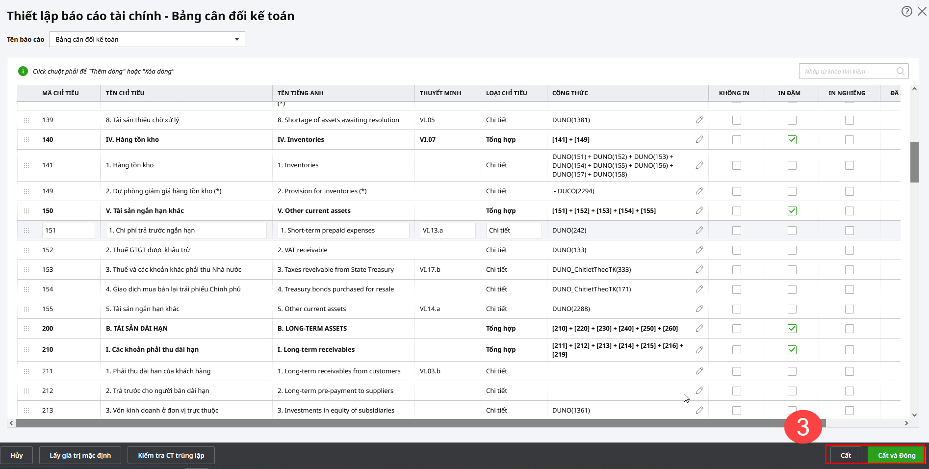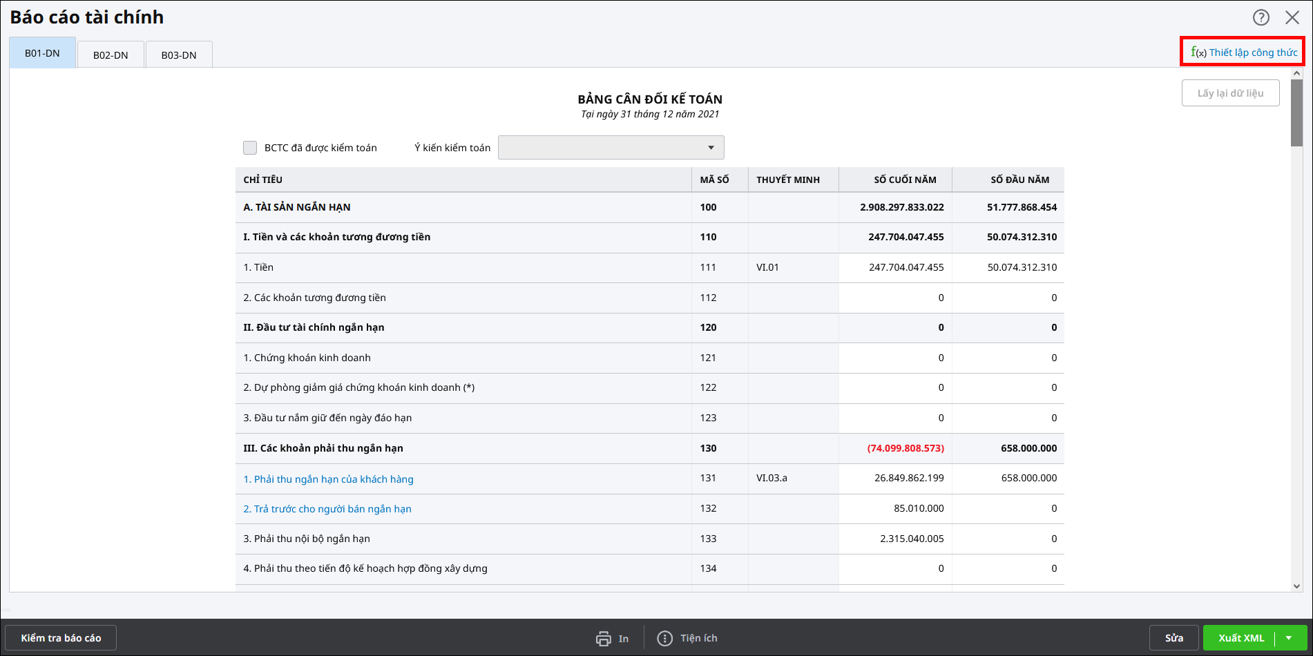 - Trình tự thao tác thiết lập lại công thức cho các chỉ tiêu báo cáo tài chính.