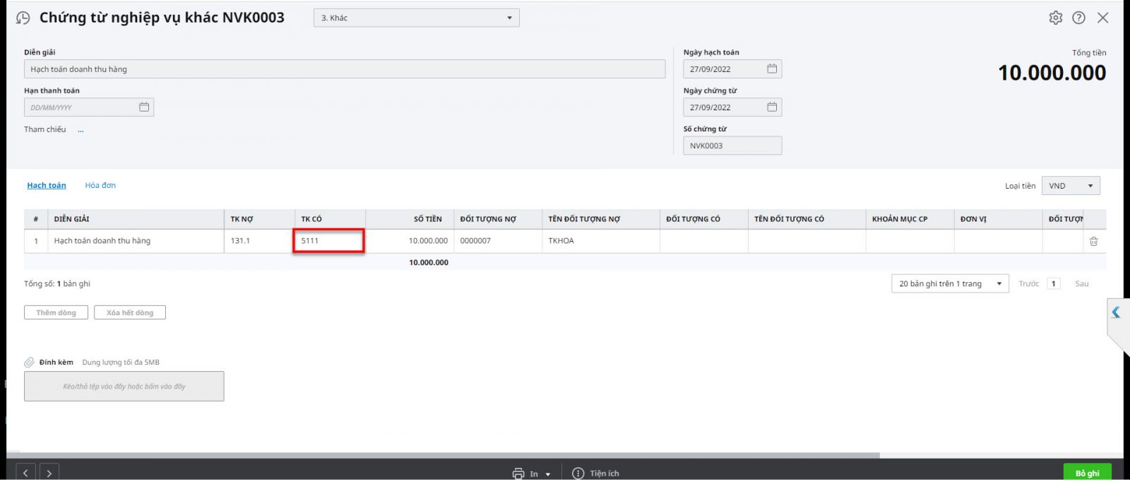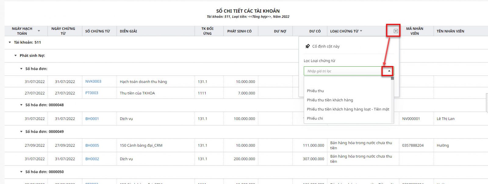 Giải pháp: Nguyên nhân 2: Do hạch toán Có 511 nhưng không làm trên phân hệ bán hàngVí dụ: Làm trên Chứng từ nghiệp vụ khác.