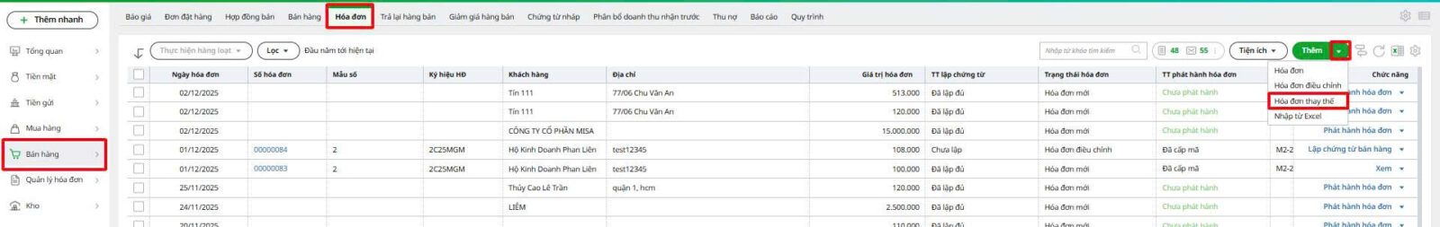 Bước 2: Thực hiện lập hóa đơn thay thế