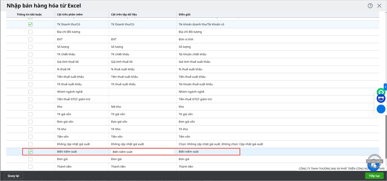 - Chương trình bổ sung thêm cột Biển kiểm soát tại bước Ghép dữ liệu: