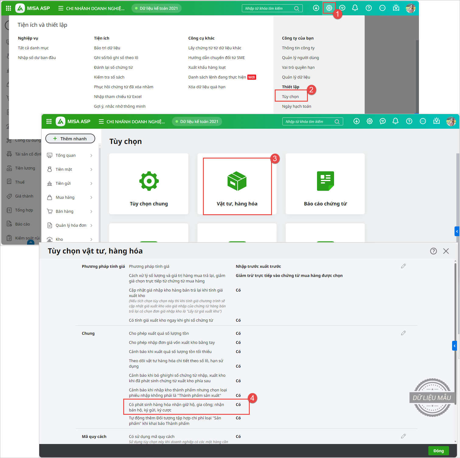 | 1.Người dùng cần thiết lập Có phát sinh hàng hóa nhận giữ hộ, gia công; nhận bán hộ, ký gửi, ký cược trên Tùy chọn vật tư hàng hóa\Chung (nếu ko chọn thì Phiếu nhập sẽ không có mục 4. Hàng nhận gia công).