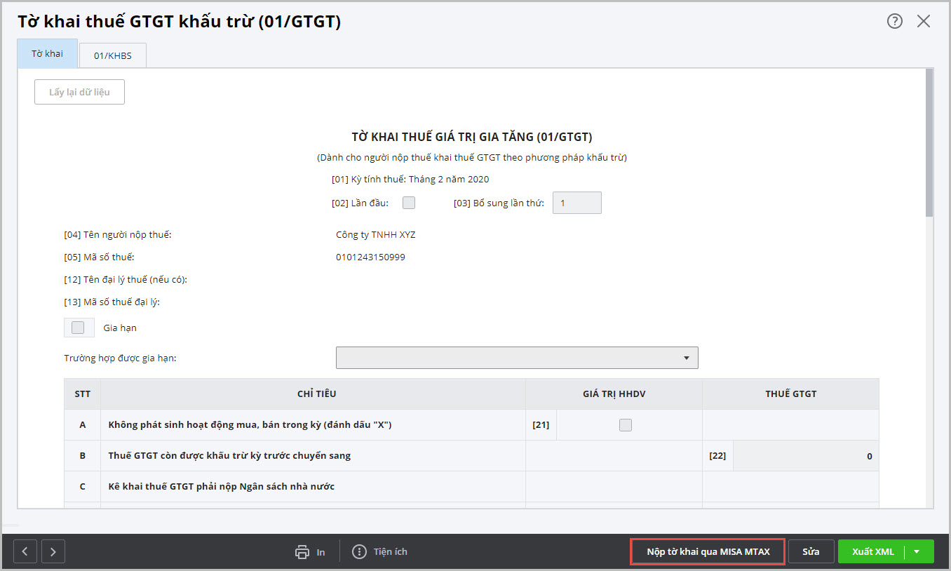 Nộp tờ khai thuế trực tiếp từ MISA ASP Kế toán thông qua MISA mTax