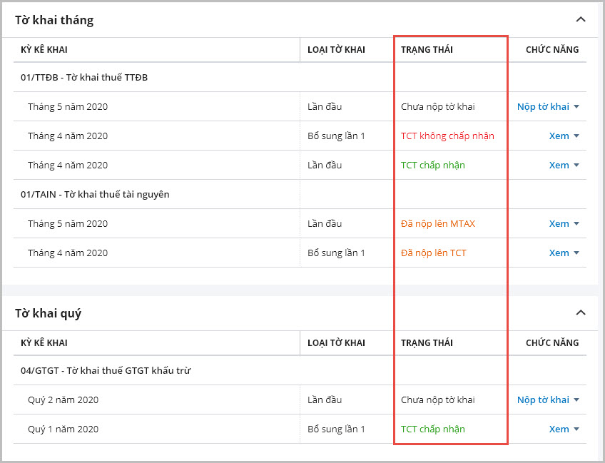 • Có thể nắm được trạng thái của tờ khai sau khi thực hiện nộp tờ khai qua MISA mTax: