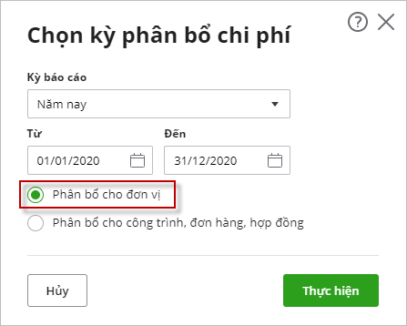 Bước 3: Chọn kỳ phân bổ tương ứng, tích chọn Phân bổ cho đơn vị.