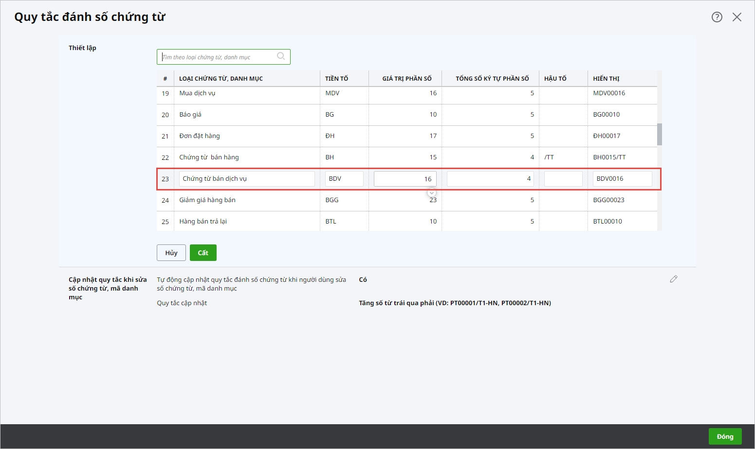 - Hướng dẫn thiết lập quy tắc đánh số riêng cho từng loại chứng từ.