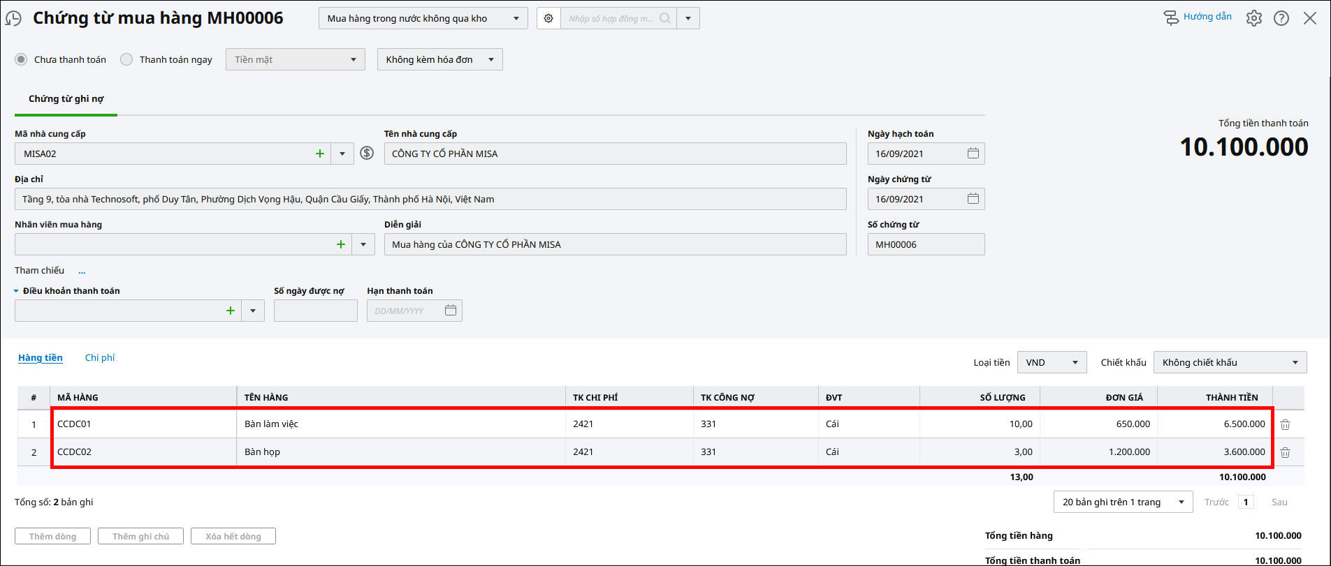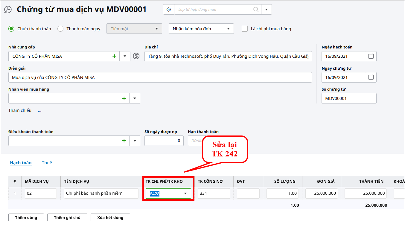 Giải pháp: Kiểm tra lại để hạch toán vào đúng tài khoản chi phí trả trước hoặc chi phí CCDC. 2.3. Chứng từ đã được chọn thành nguồn gốc hình thành cho CCDC khác.Giải pháp: Kiểm tra xem chứng từ đã được chọn làm nguồn gốc hình thành của CCDC nào khác. 2.4. Mua nhiều CCDC trên cũng 1 chứng từGiải pháp: Để chọn được nguồn gốc hình thành cho từng CCDC, trên chứng từ mua CCDC, cần tách ra thành nhiều dòng với số tiền tương ứng với từng CCDC.
