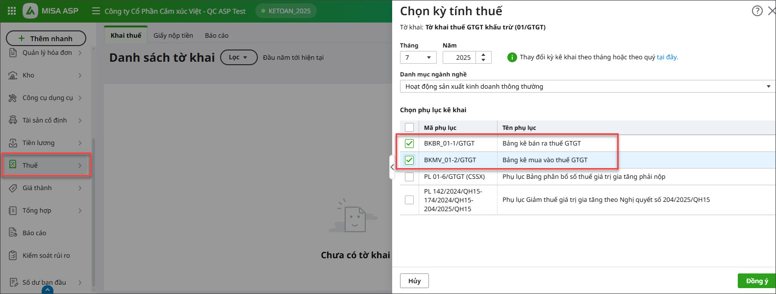 - Trên phần mềm, khi lập Tờ khai thuế GTGT sẽ tích kèm Phụ lục Bảng kê mua vào, Bảng kê bán ra.