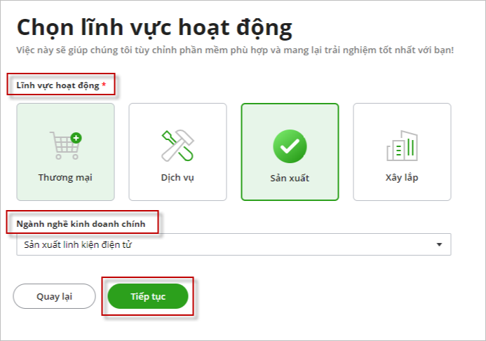 - Chọn Lĩnh vực hoạt động: