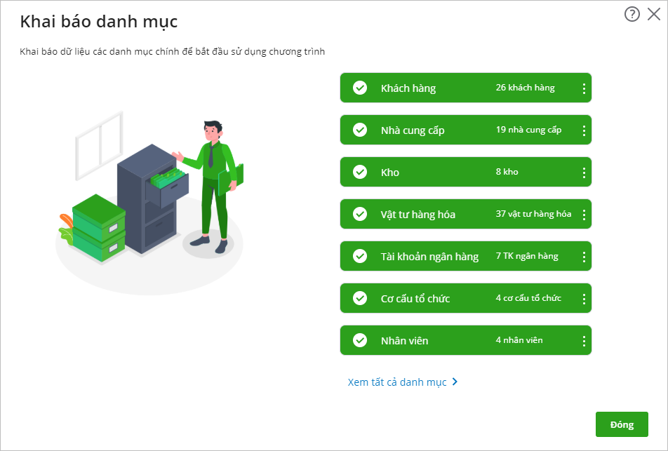 - Thực hiện Khai báo danh mục: Khai báo dữ liệu các danh mục chính để bắt đầu sử dụng