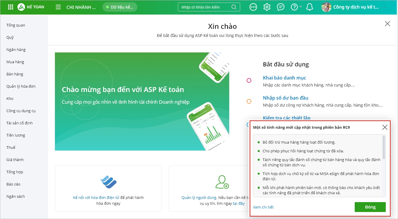 Từ phiên bản RC9 trở đi: Chương trình hiển thị thông báo các tính năng đã phát triển trong phiên bản mới để người dùng nắm được và nhanh chóng sử dụng các tính năng mới.