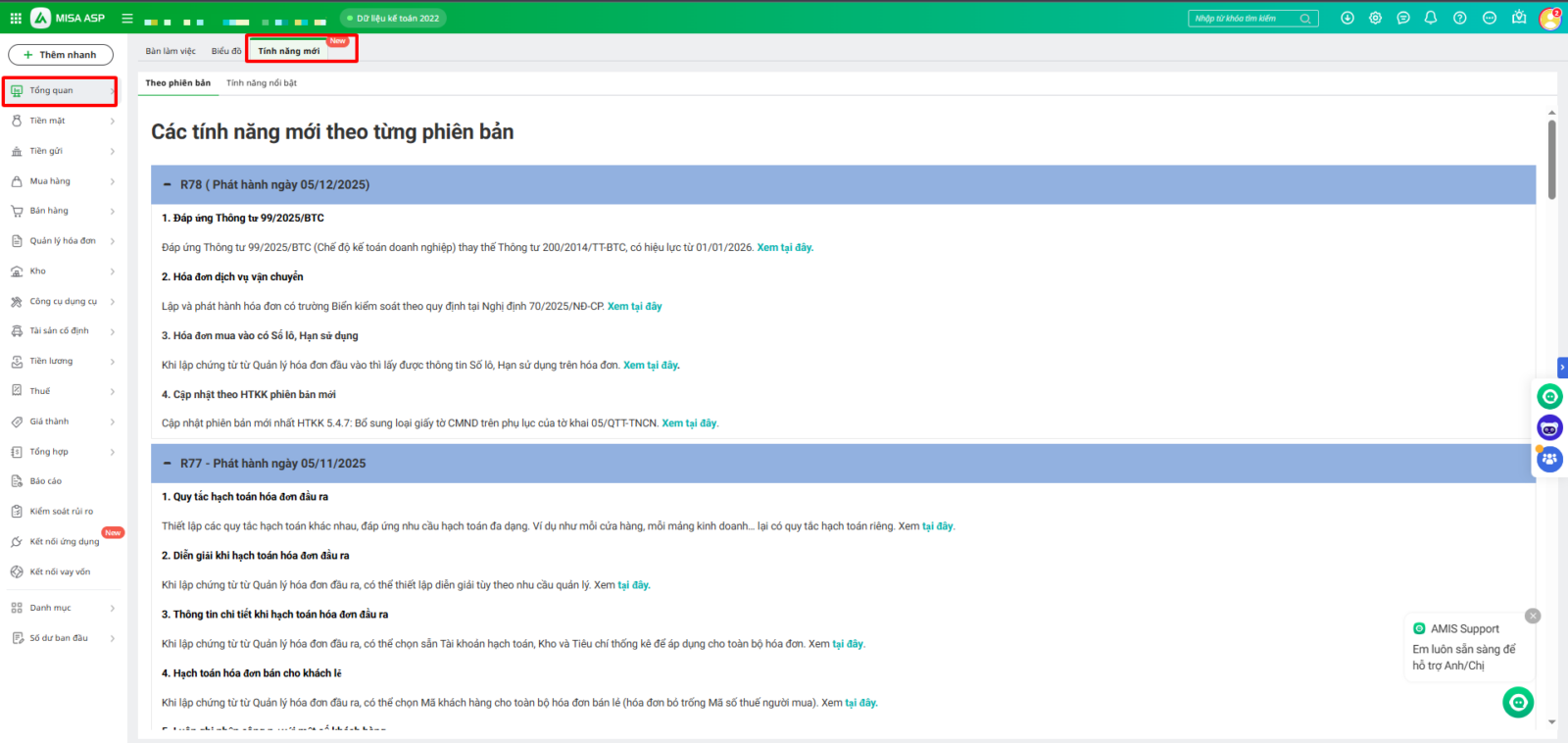 - Hoặc vào phân hệ Tổng quan\tab Tính năng mới\ Tính năng nổi bật