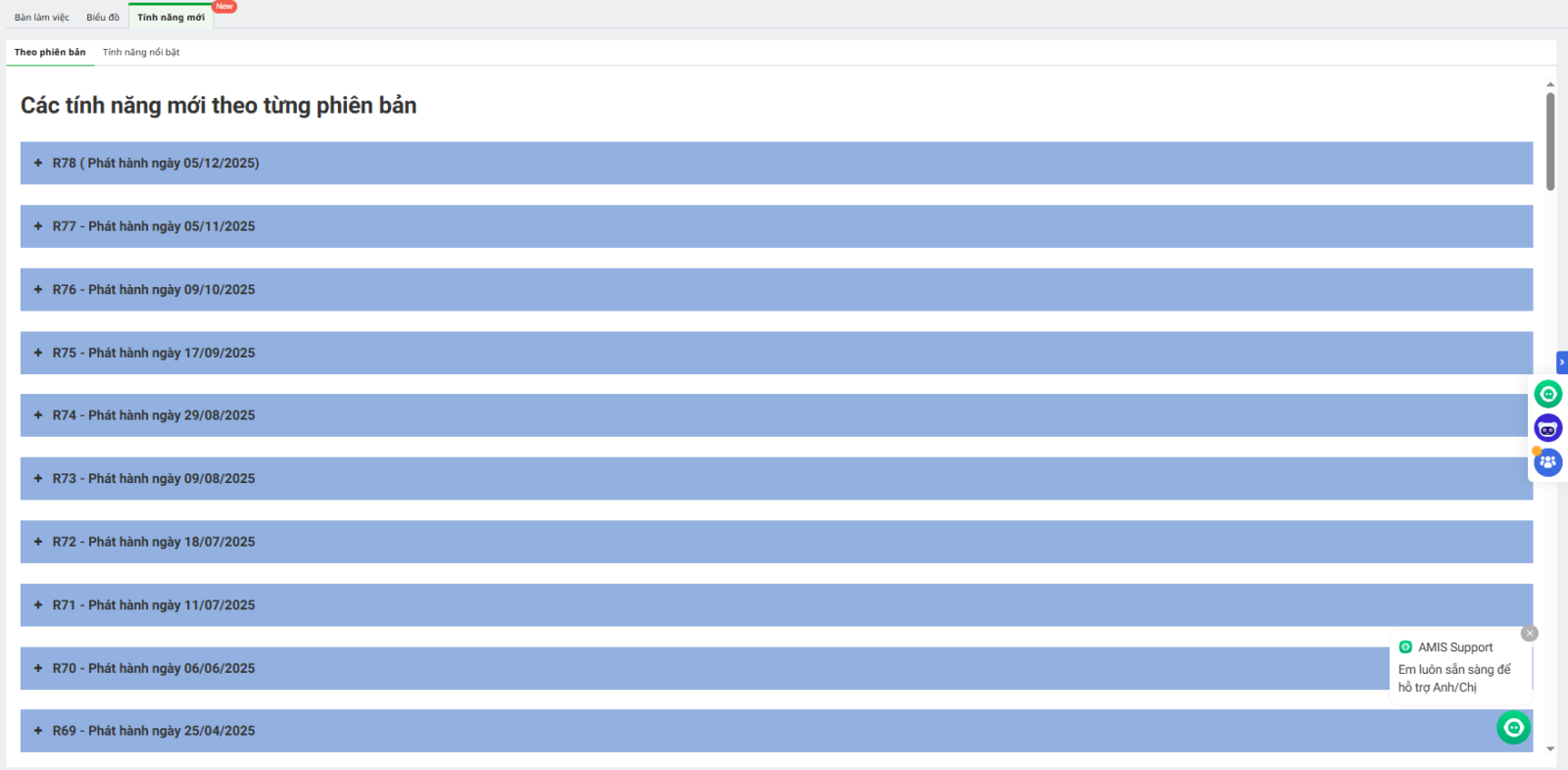 Bước 1: Vào phân hệ Tổng quan\tab Tính năng mới\ Theo phiên bản