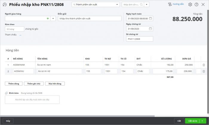 - Hướng dẫn xuất kho, nhập kho, hạch toán chi phí, xác định kỳ tính giá thành, tính giá thành và kết chuyển chi phí