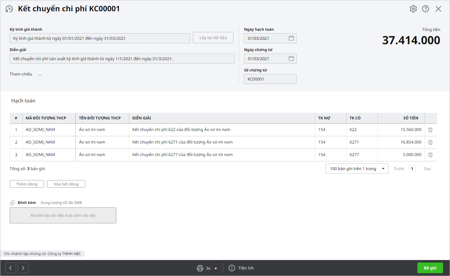 Bước 4: Kiểm tra chứng từ kết chuyển chi phí: