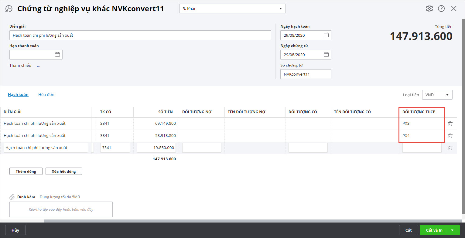• Khi hạch toán các chứng từ chi phí phát sinh nếu xác định được là chi phí phát sinh cho đối tượng nào thì chọn thông tin tại cột Đối tượng THCP hoặc bỏ trống nếu chưa xác định được đối tượng.