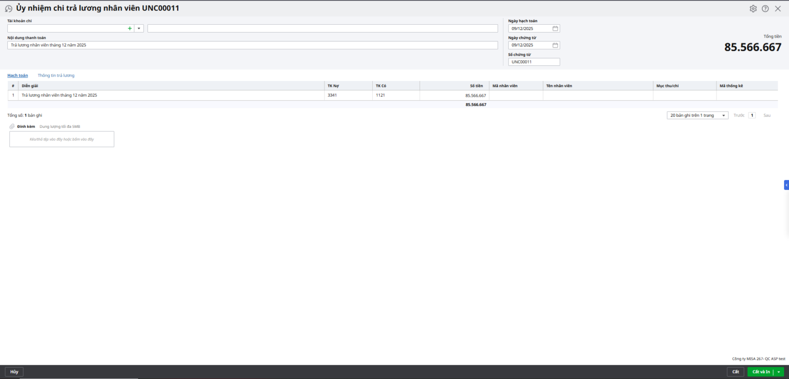 Bước 4: Nhấn Cất và Chọn chức năng In trên thanh công cụ, sau đó chọn mẫu ủy nhiệm chi cần in.