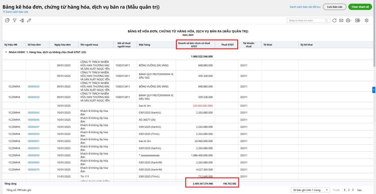 - Bảng kê hóa đơn, chứng từ hàng hóa, dịch vụ bán ra (mẫu quản trị)