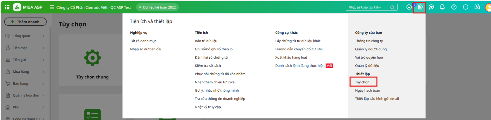 Bước 1: Vào biểu tượng bánh răng ⚙ Tiện ích và thiết lập\Tùy chọn