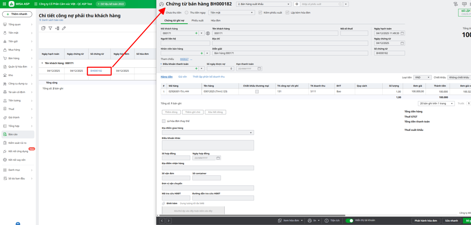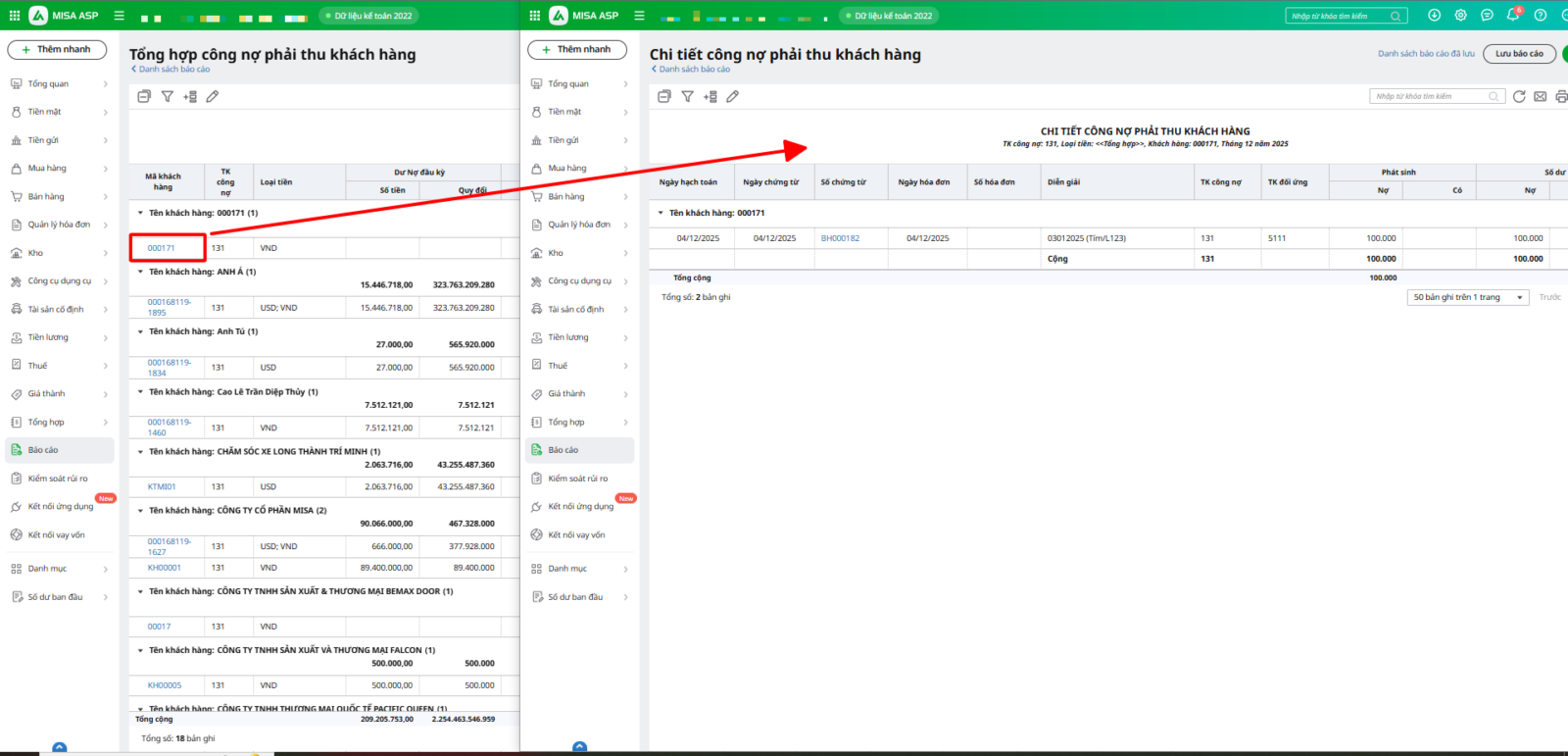- Hướng dẫn xem nhanh chứng từ liên quan từ báo cáo chi tiết.