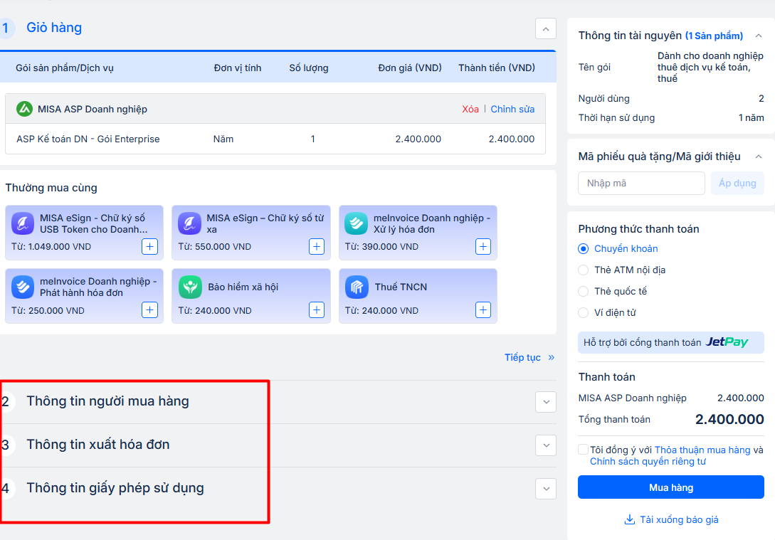 • Sau khi khai báo đầy đủ thông tin mua sản phẩm, nhấn Tiếp tục