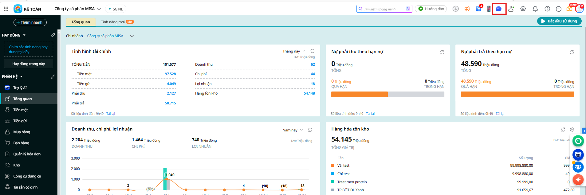 Bước 1: Tại giao diện AMIS Kế toán\ nhấn vào biểu tượng trao đổi trên thanh công cụ