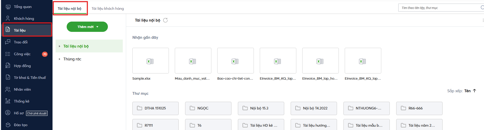 Bước 1: Vào mục Tài liệu\Tab Tài liệu nội bộ