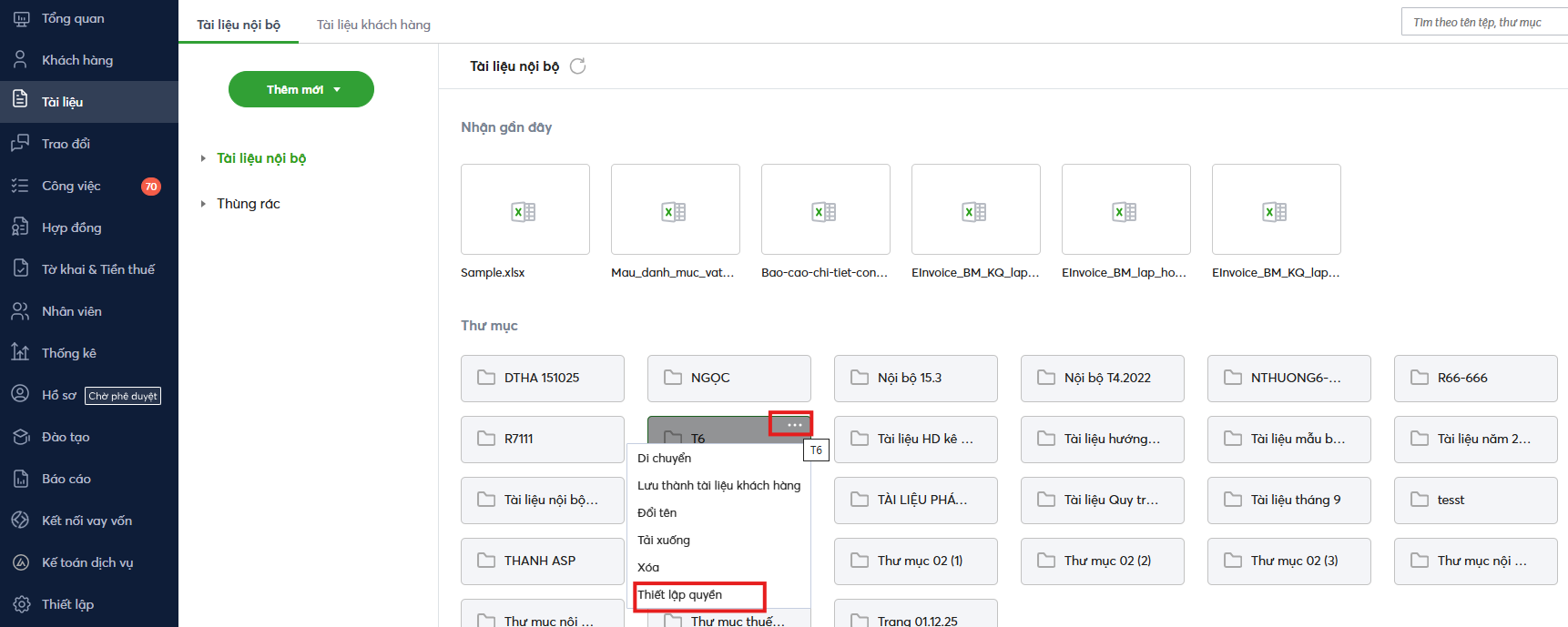 Lưu ý: Có thể Phân quyền với tài liệu cho nhân viên bằng cách nhấn vào dấu ba chấm, chọn Thiết lập quyền