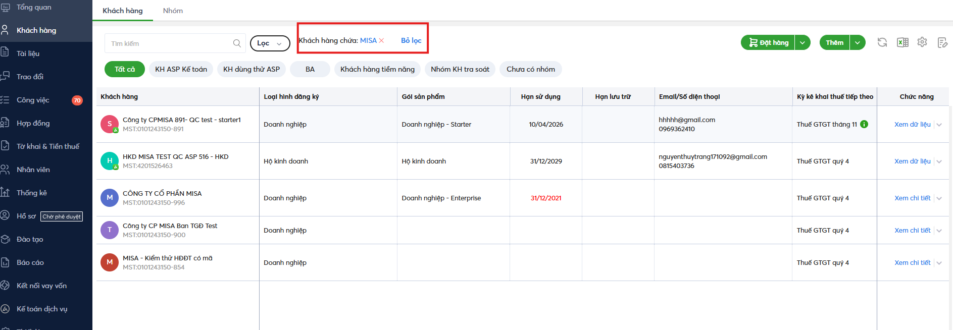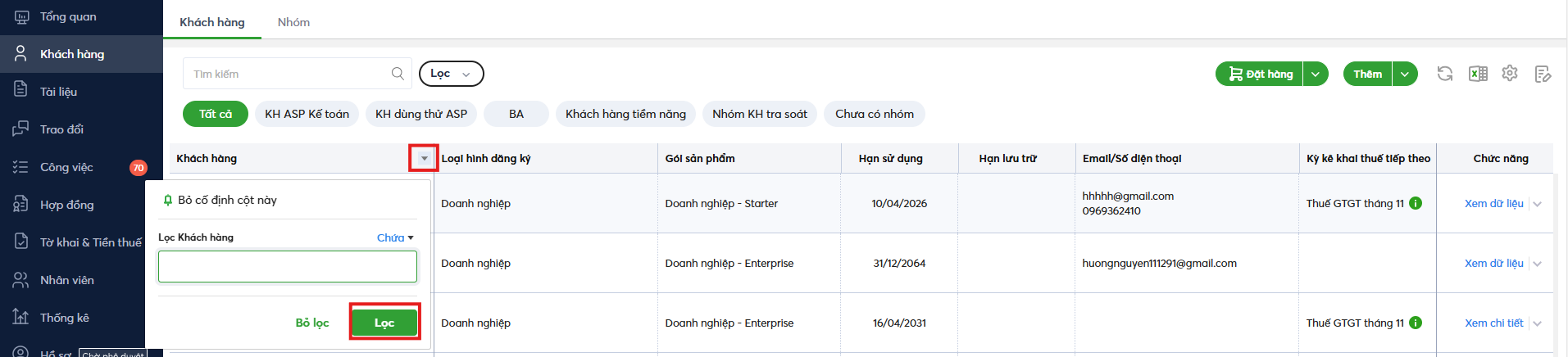 - Hướng dẫn các thao tác trên giao diện danh sách: lọc, căn chỉnh, thay đổi vị trí cột, xuất excel.